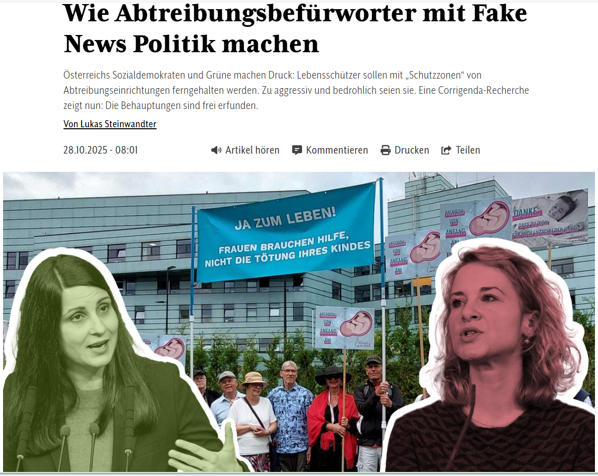 Corrigenda (28.10.2025): Eva-Maria Holzleitner und Meri Disoski: Wie Abtreibungsbefürworter mit Fake News Politik machen | Corrigenda