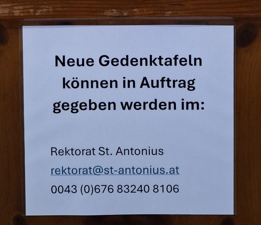 Es besteht die Möglichkeit, Gedenktäfelchen durch einen Steinmetz gestalten zu lassen.