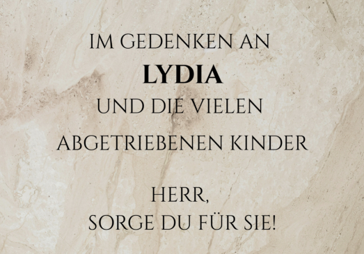 Für all die vielen Kinder, die durch Abtreibung zu Tode gekommen sind, steht stellvertretend der Name Lydia.