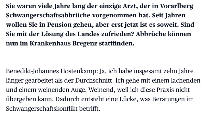 Zum „Abschied“ benannte der langjährig in Bregenz tätige Abtreibungsarzt gegenüber der Zeitung Presse am Sonntag (7.2.2026) interessante Details.