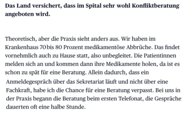 Die Vorarlberger Landesregierung nannte damals die bevorstehende Pensionierung des Vorarlberger Abtreibungsarztes als Grund, im Bregenzer LKH eine Kinderabtreibungspraxis einzurichten. Dennoch führte er in seiner Praxis medikamentöse Abtreibungen durch.