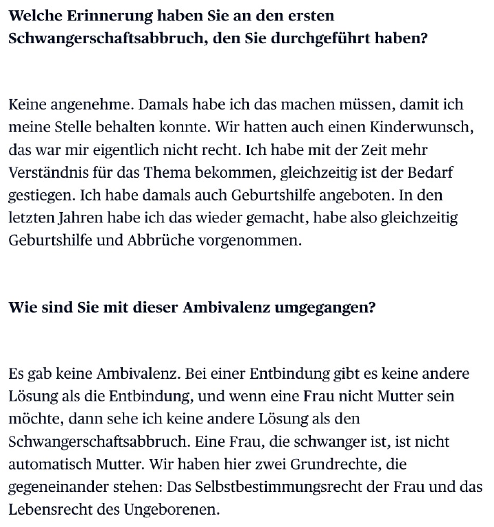 „An die erste Kindesabtreibung habe er keine angenehme Erinnerung“, sagt er in einem Interview gegenüber der Zeitung Presse am Sonntag.