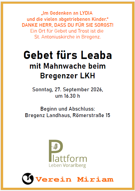 Veranstalter: Verein Miriam und Plattform für das Leben Vorarlberg